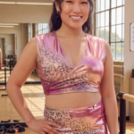 J’aime cet ensemble sobre et élégant, que je porte sur un legging noir ou jambes nues, avec ou sans rien sur les hanches. J’y ajoute un petit boléro s’il fait froid dans le studio de danse, et je le réhausse d’un cordon de taille strassé.